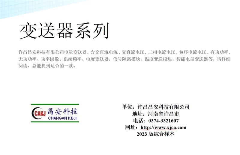許昌昌安科技有限公司是專業(yè)生產(chǎn)智能電力測控設備及自動化裝置的高科技公司。產(chǎn)品包括電力系統(tǒng)微機中央信號報警裝置,電纜絕緣在線監(jiān)測裝置,相地保護裝置,電流、電壓監(jiān)視繼電器,失壓斷流計時儀,多功能電力儀表、電量變送器、溫濕度控制器、智能操控裝置等產(chǎn)品,形成了多系列為電力系統(tǒng)成套企業(yè)配套的產(chǎn)品及服務。 公司注重新技術新產(chǎn)品的開發(fā),同時全面貫徹ISO9001質(zhì)量保證體系。 公司前身為許昌市儀器儀表研究所。多年以來,公司致力于測控儀器儀表的開發(fā)生產(chǎn),積累了豐富的為電力用戶服務的經(jīng)驗及產(chǎn)品,形成了一個充滿活力,積極進取的團隊。